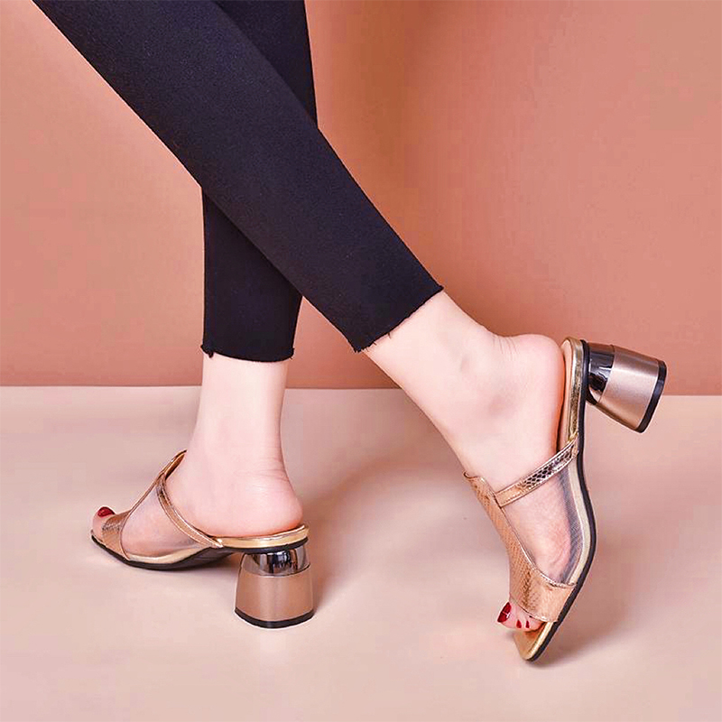 Mesh Shoes For Women With 2inch Block Heel Korean Gold & PeepToe Breathable Minimalist Comfort Daily