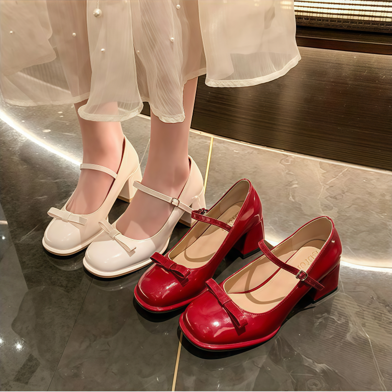 Available in Red and Beige, these Korean-style heels feature a premium patent leather finish and a comfortable 2.5-inch block heel for stability and poise.